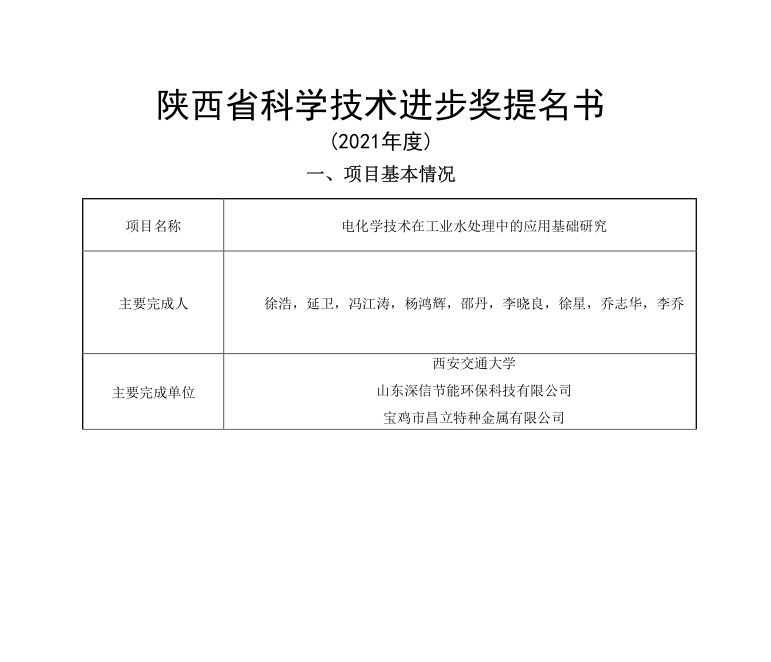 根據陜西省科技獎勵有關要求,現將我司2020年度陜西省科技獎合作申報項目 “電化學技術在工業水處理中的應用基礎研究”信息在公司主頁(http://m.cw888.com.cn/)上公布,向全校征詢異議。